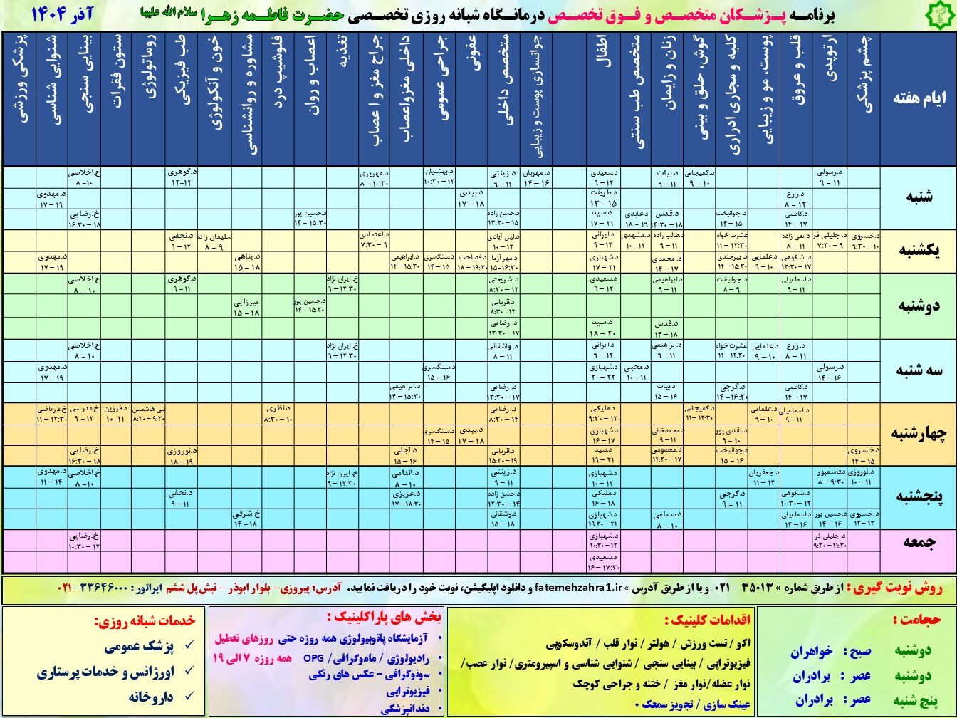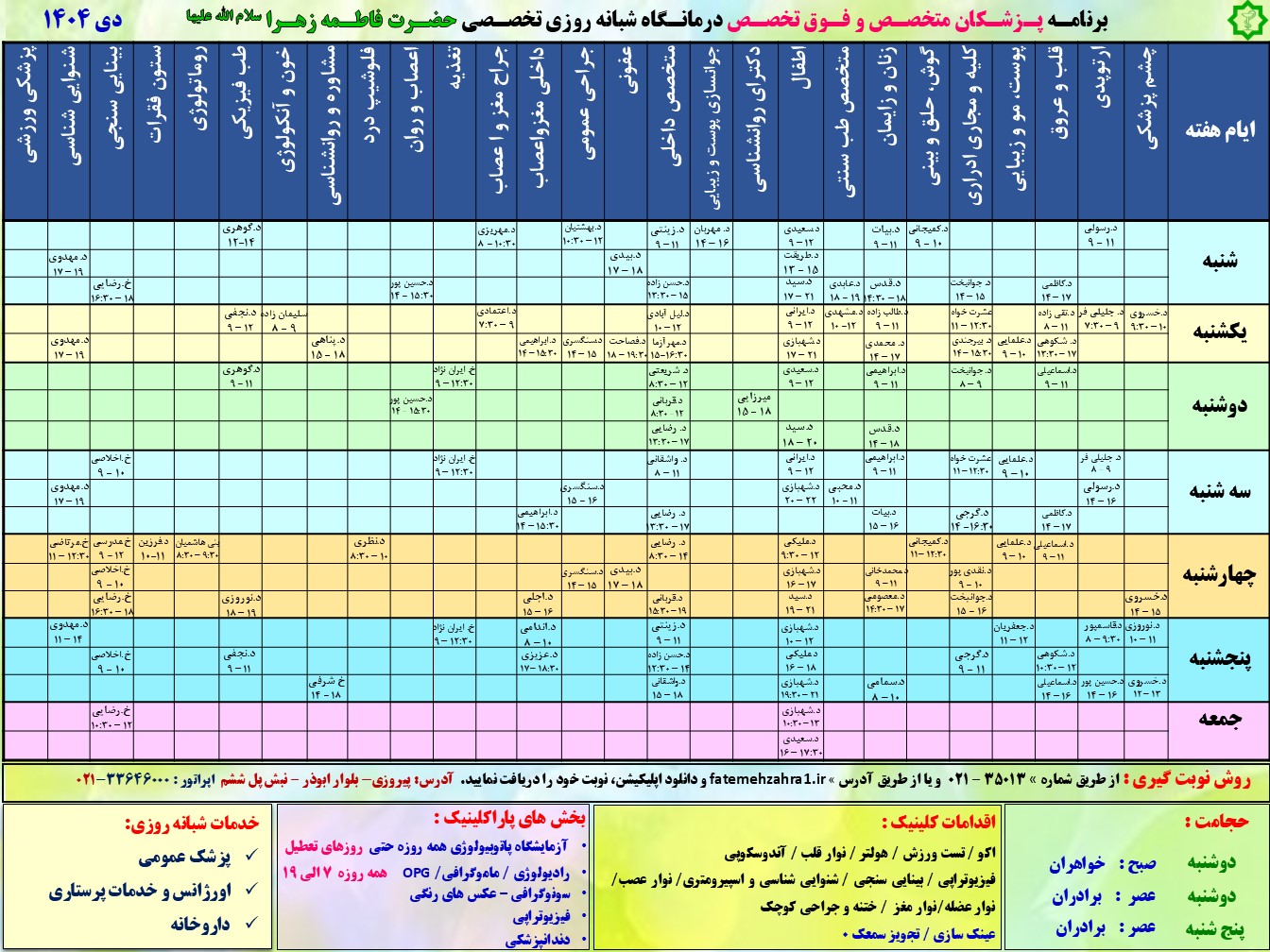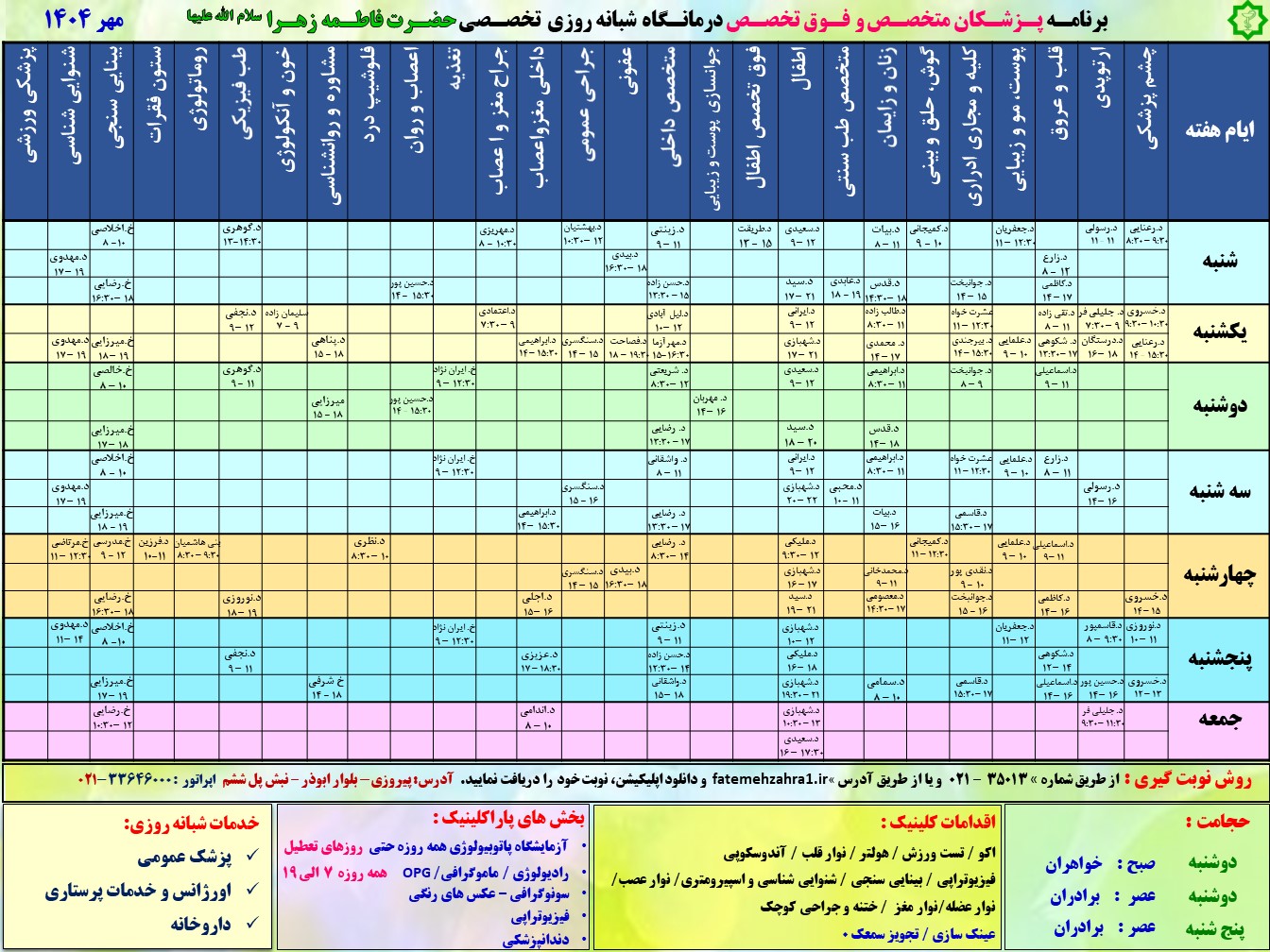 به درمانگاه تخصصی و فوق تخصصی حضرت فاطمه زهرا(س) خوش آمدید
