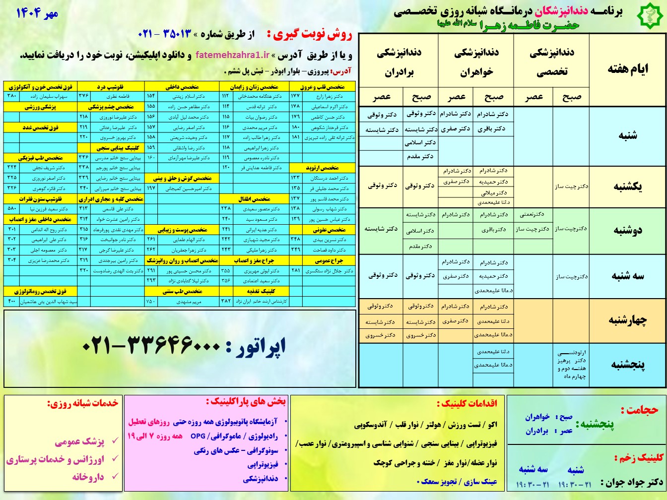 نوبت دهی اینترنتی درمانگاه تخصصی حضرت فاطمه زهرا (س)